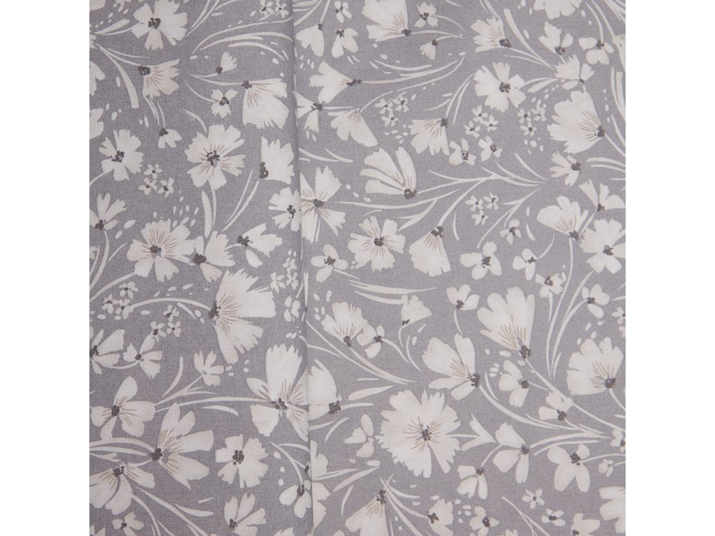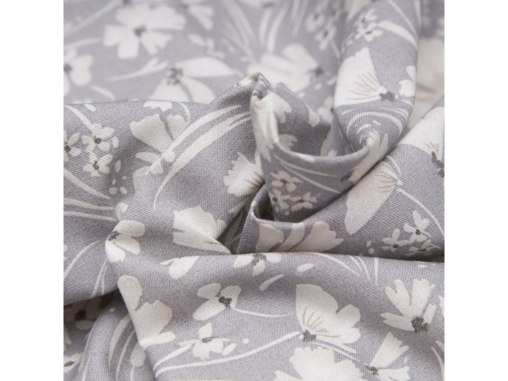 Každý metr této 100% bavlněné látky je ověnčený roztomilými bílými kvítky na světle šedém podkladu, přičemž každý květ je pečlivě vyvedený, aby vynikl v kontrastu s pozadím.