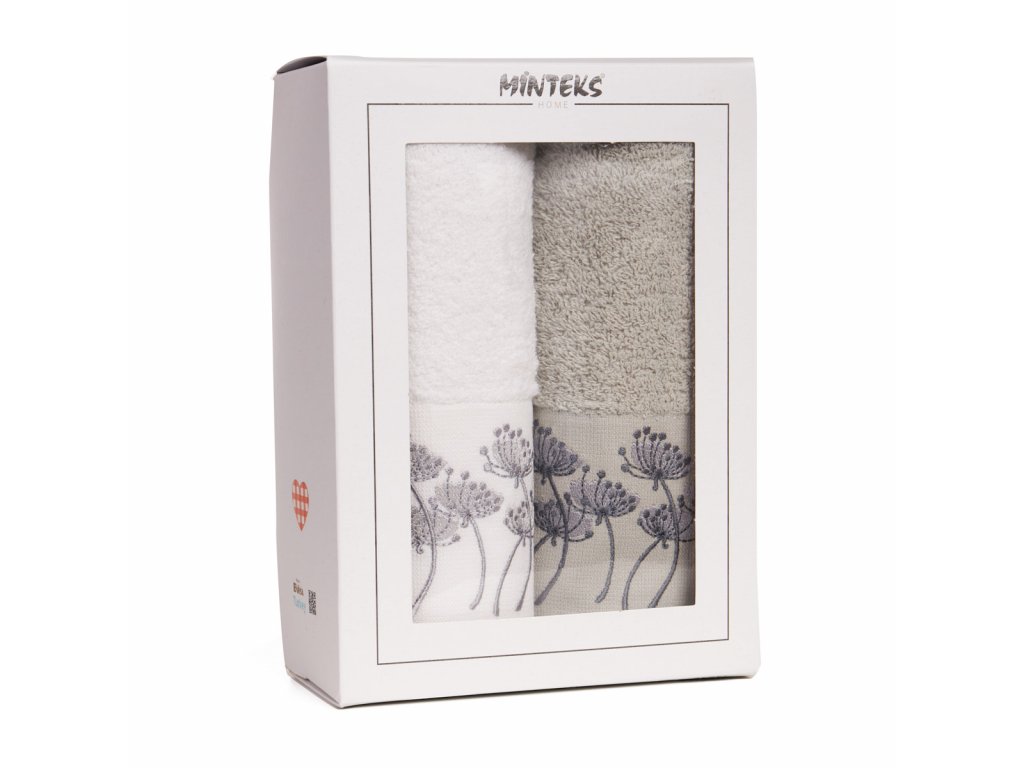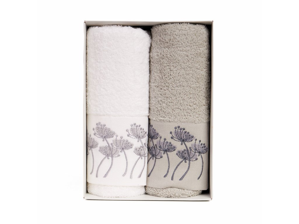 Zajímavá dárková sada 2 ručníků s motivem kvítků bílé a šedé barvy, která jistě potěší Vaši rodinu i blízké.