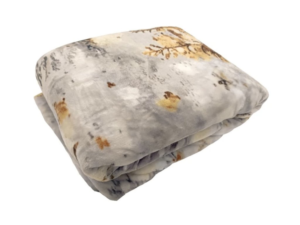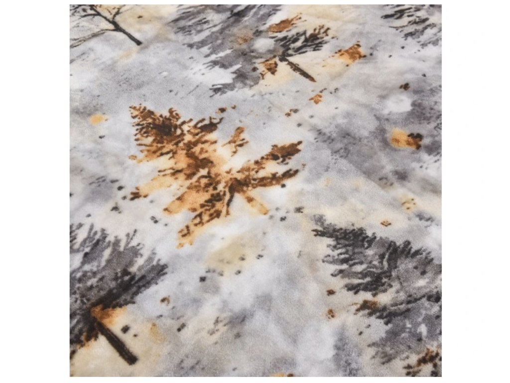 Vzor je inspirovaný zimní přírodou – na dece se objevují stylizované siluety stromků a jemné motivy vloček, které vytvářejí decentní, nerušivý, ale přesto zajímavý design. Celkový dojem připomíná zasněženou krajinu zahalenou do mlhy, což dodává dece elegantní a uklidňující vzhled.