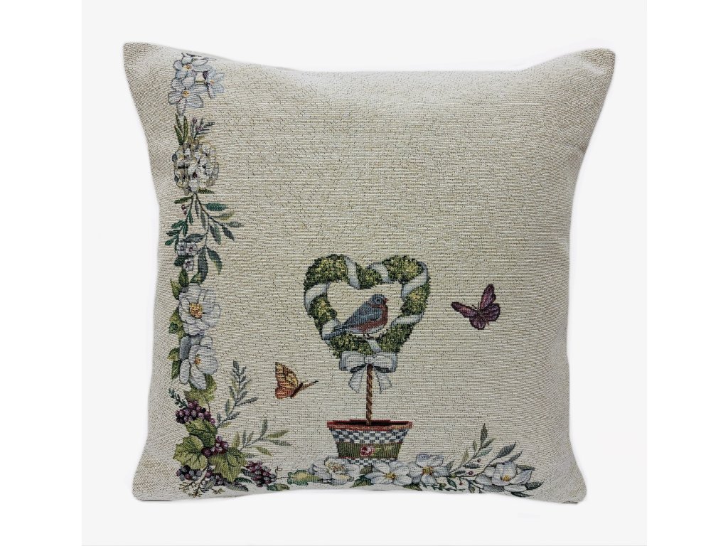 Gobelínový povlak na polštář - ptáček v srdcovém věnci