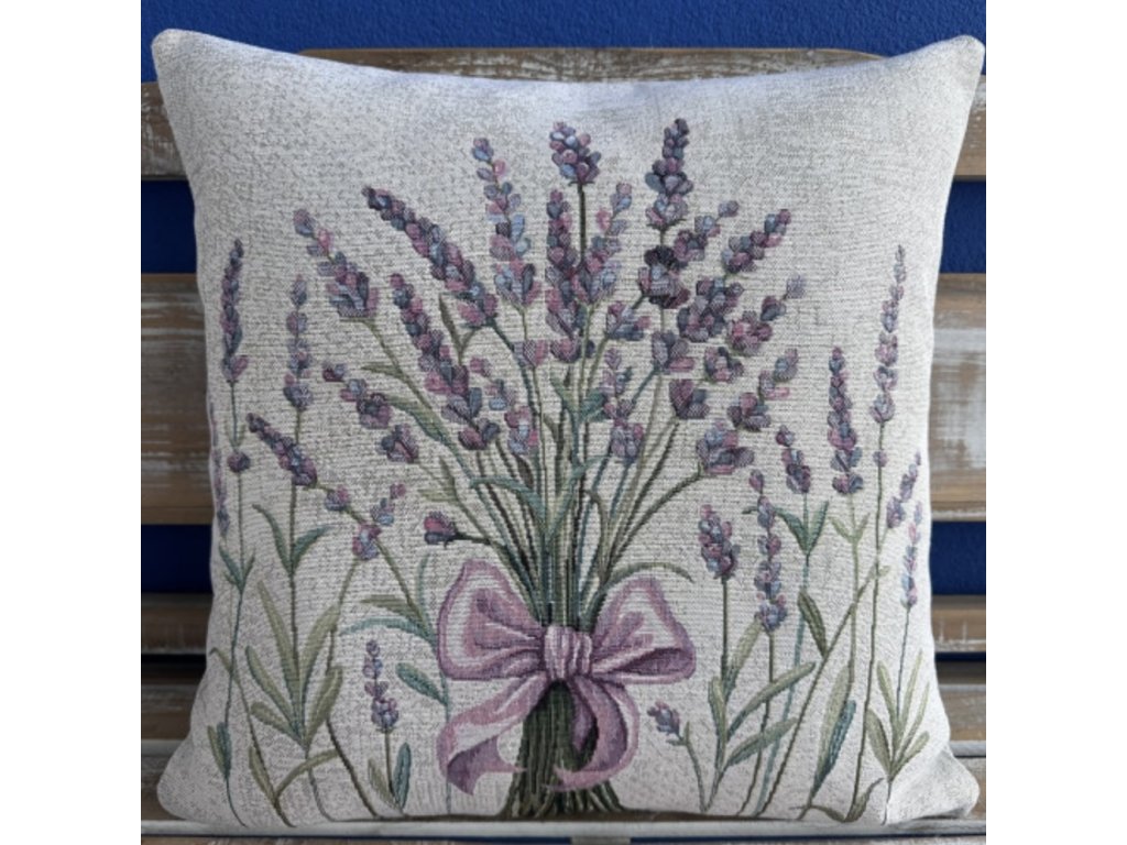 Gobelínový povlak na polštář - svazek levandule s mašlí