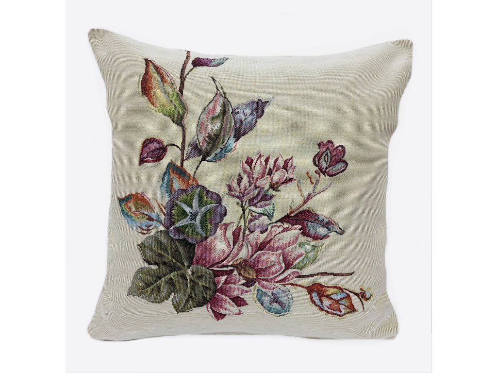 Gobelínový povlak na polštář - umělecký motiv květů a poupat