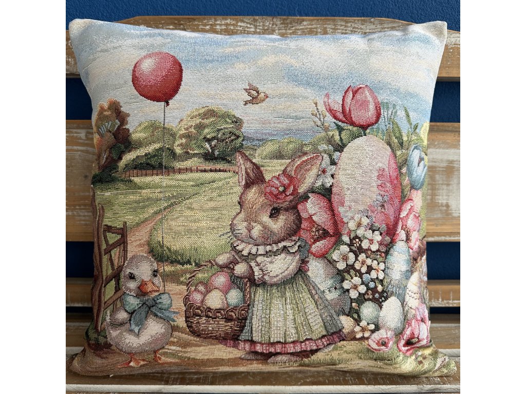 Gobelínový povlak na polštář - zajíc v šatičkách