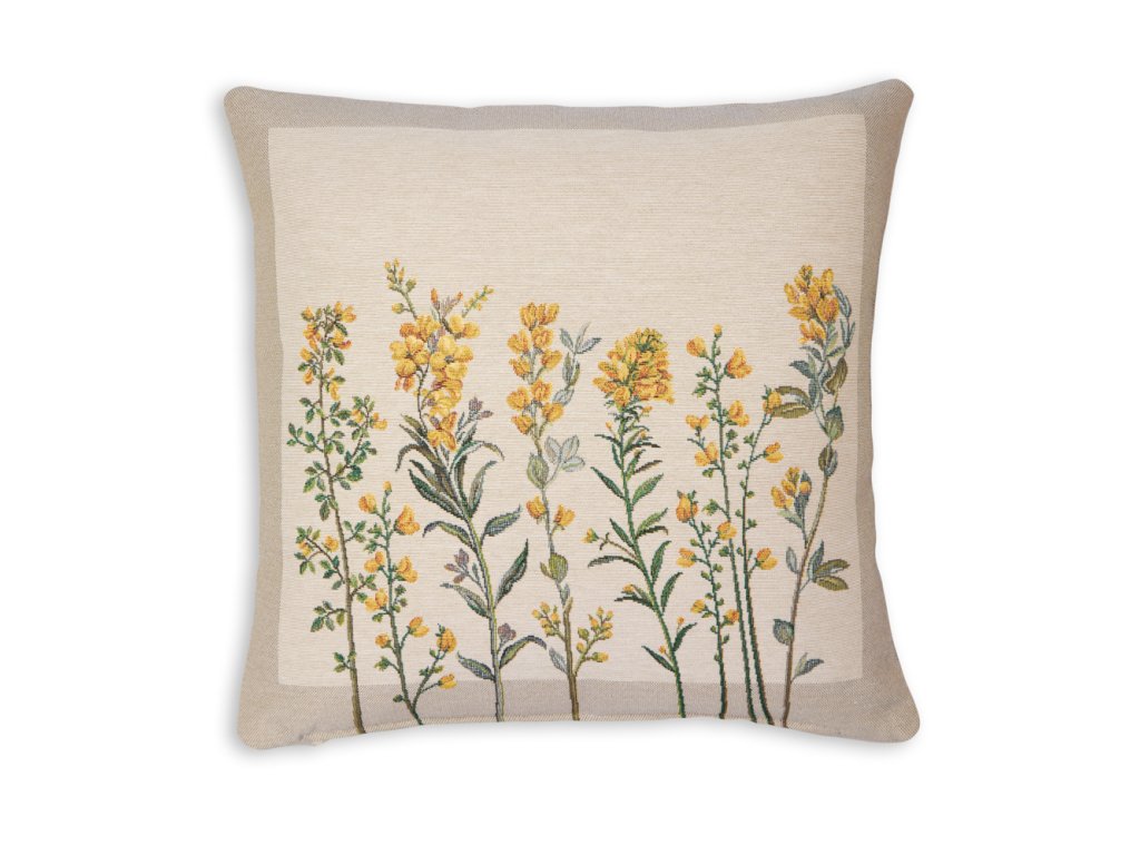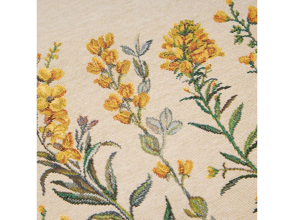 Rozjasněte svůj interiér tímto nádherným gobelínovým povlakem na polštář, jenž je skvostem každé místnosti. Na první pohled zaujme nápaditým motivem žlutého lučního kvítí, které je pečlivě vetkáno na kvalitní tkaninu.
