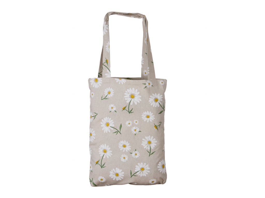 Krása a funkčnost v jednom – Na světlém plátně vynikají živé obrázky kopretin, dodávající tašce čistý a osvěžující vzhled. Tento motiv nejen že působí esteticky příjemně, ale také evokuje pocit klidu a spojení s přírodou.