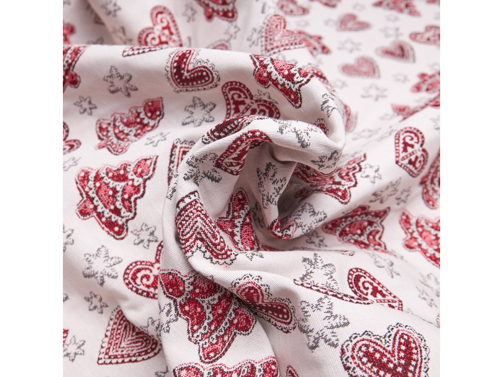 Lurexové látky v metráži jsou velmi zajímavým druhem látek, které kombinují vysokou pevnost a životnost, spolu se zajímavým designem, který je tvořen lesknoucími se vlákny. Lurexová látka zajímavý motiv červených srdíček a stromečků na béžovém podkladu.