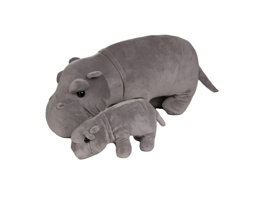 Hlavní zajímavostí je krásný design s praktickým zipem na břiše, ukrývající překvapení – dalšího malého hrošíka o délce přibližně 10 cm. Rodičovský hroch měří působivých 50 cm a oba jsou vyrobeni z měkkého, objímání hodného polyesterového materiálu, který je snadno udržovatelný a dlouho vydrží.