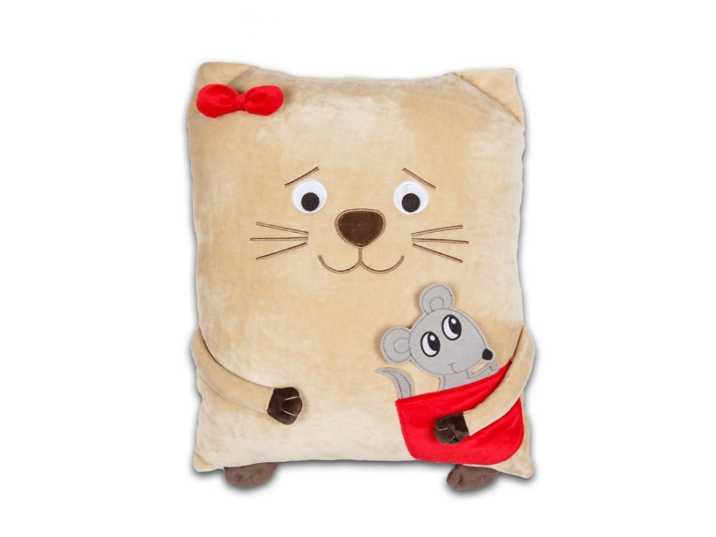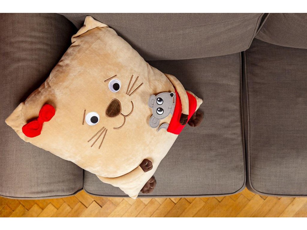 Polštářek a plyšák kočička Mazlinka, která přímo láká k přitulení. Polštářek má malou kapsičku s myší kamarádkou.