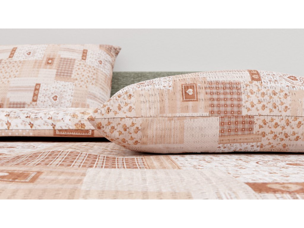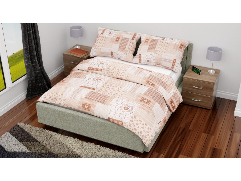 Stylové krepové povlečení s motivem hnědých srdíček s patchwork motivem, je krásné povlečení pro ozdobení Vaší postele. Ložní souprava je oboustranná, lze tedy používat obě strany povlečení bez jakéhokoliv omezení. Toto originální povlečení Vám pomůže vykouzlit jedinečnou atmosféru Vaší ložnice, ze které se Vám ráno nebude chtít vstávat.