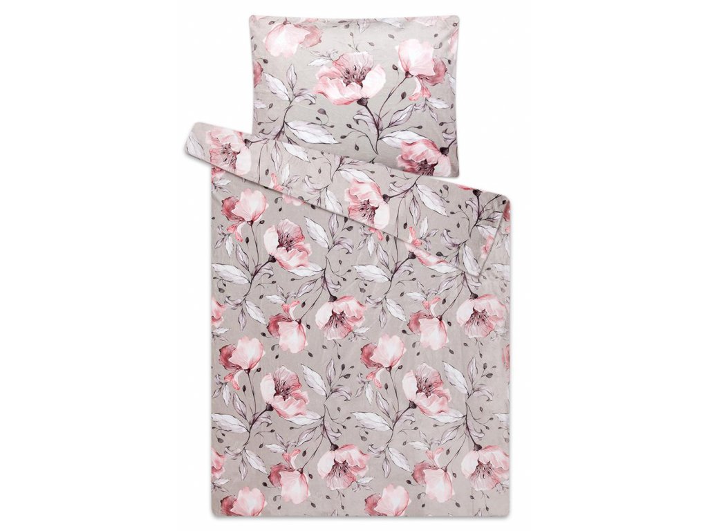 Toto mikroflanelové povlečení s šedým podkladem a růžovo bílých květů Vám navodí jedinečně sladkou atmosféru.
