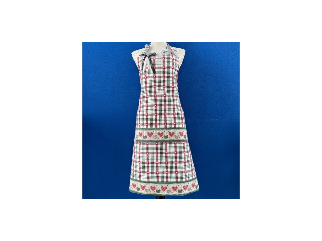 Kombinace červené, zelené a bílé barvy vytváří svěží a hravý vzhled, který rozzáří každou kuchyni. Motiv srdíček dodává zástěře romantický nádech.