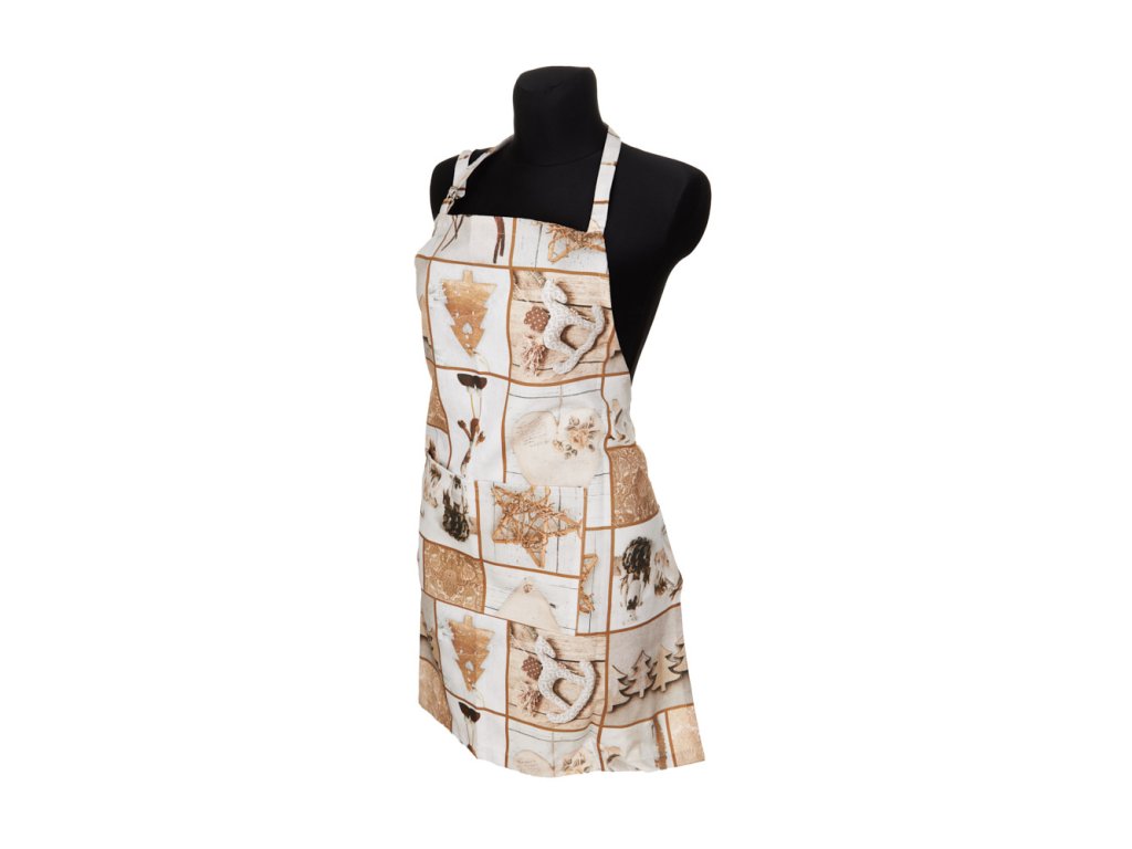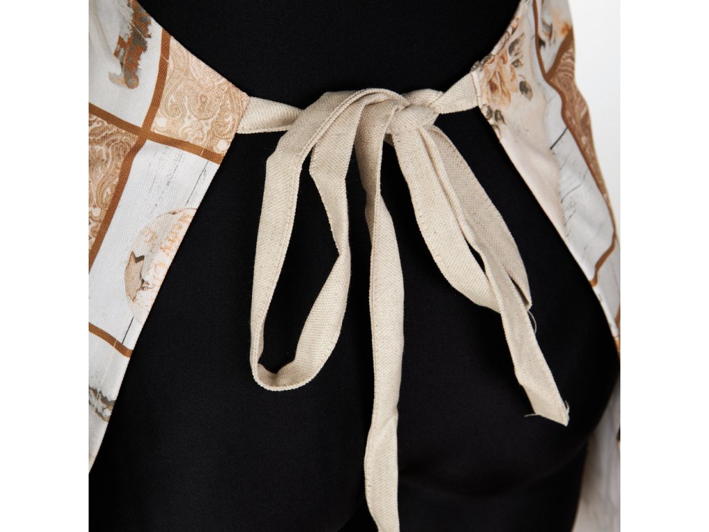 Zástěra je z 100 % bavlny. Rozměry zástěry (krycí části bez šňůrek) jsou 75 cm (délka) x 65 cm (šířka).